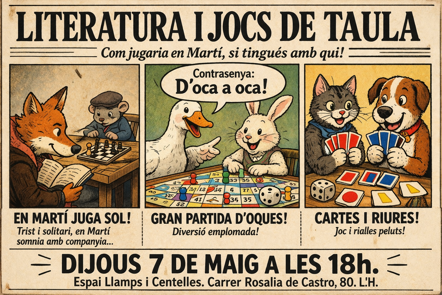 Data: dijous, 7 de maig de 2026 Hora d’inici: 18:00 h. Hora d’acabament: 19:30 h. aproximadament Lloc: Espai Llamps i Centelles Adreça: Carrer Rosalía de Castro, 80 baixos 08901 l’Hospitalet Metro més proper: Torrassa (Línies 1, 9 i 10) es troba a cent metres de l’Espai