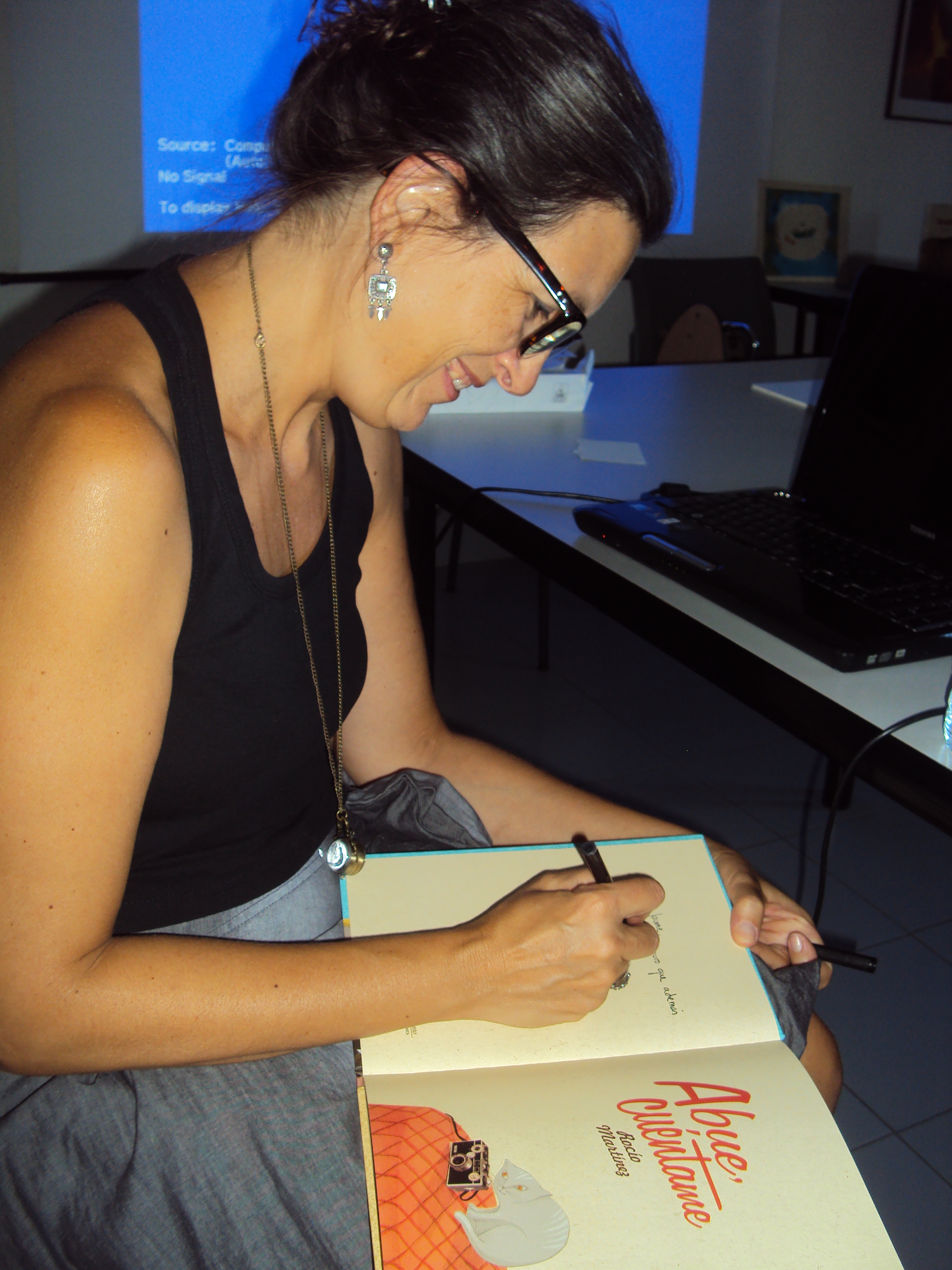 DSC08534La Rocío Martínez viu a Madrid i des del 1990 es dedica professionalment a la il·lustració, principalment de llibres infantils i juvenils, amb diferents editorials com Kalandraka, Cruïlla, Edelvives, Ekaré, Fondo de Cultura Econòmica i  algunes més. Il·lustra tant llibres d’altres autors com àlbums en els quals ella n’és l’autora.
