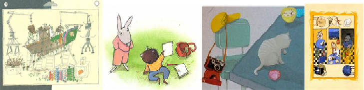 Hi ha altres autors-il·lustradors, com la Rocío Martínez, són més camaleònics i adapten l’estil, la tècnica, el traç en funció del text, per donar-li la màxima expressivitat i potència visual a allò que volen expressar. Fixeu-vos, sinó, en aquestes quatre imatges: