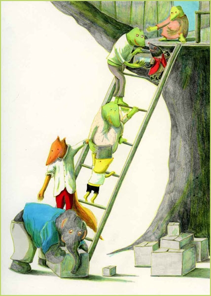 En les seves històries, també es nota una certa influència d’Arnold Lobel i de Jean de Brunhoff, entre d’altres -sense oblidar la quantitat de bons il·lustradors que han treballat i viscut a Brussel·les (Hergé, Peyo, Morris etc.) i que de ben segur han acompanyat la seva infantesa i adolescència.