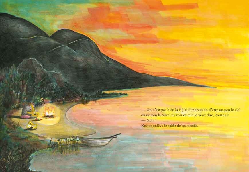 Les aquarel·les suaus esbossades en pàgines grans de color crema ajuden a entendre els sentiments que es desprenen dels personatges.