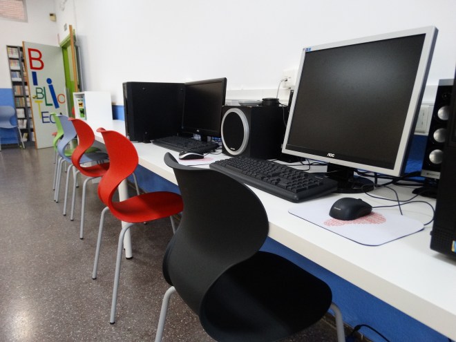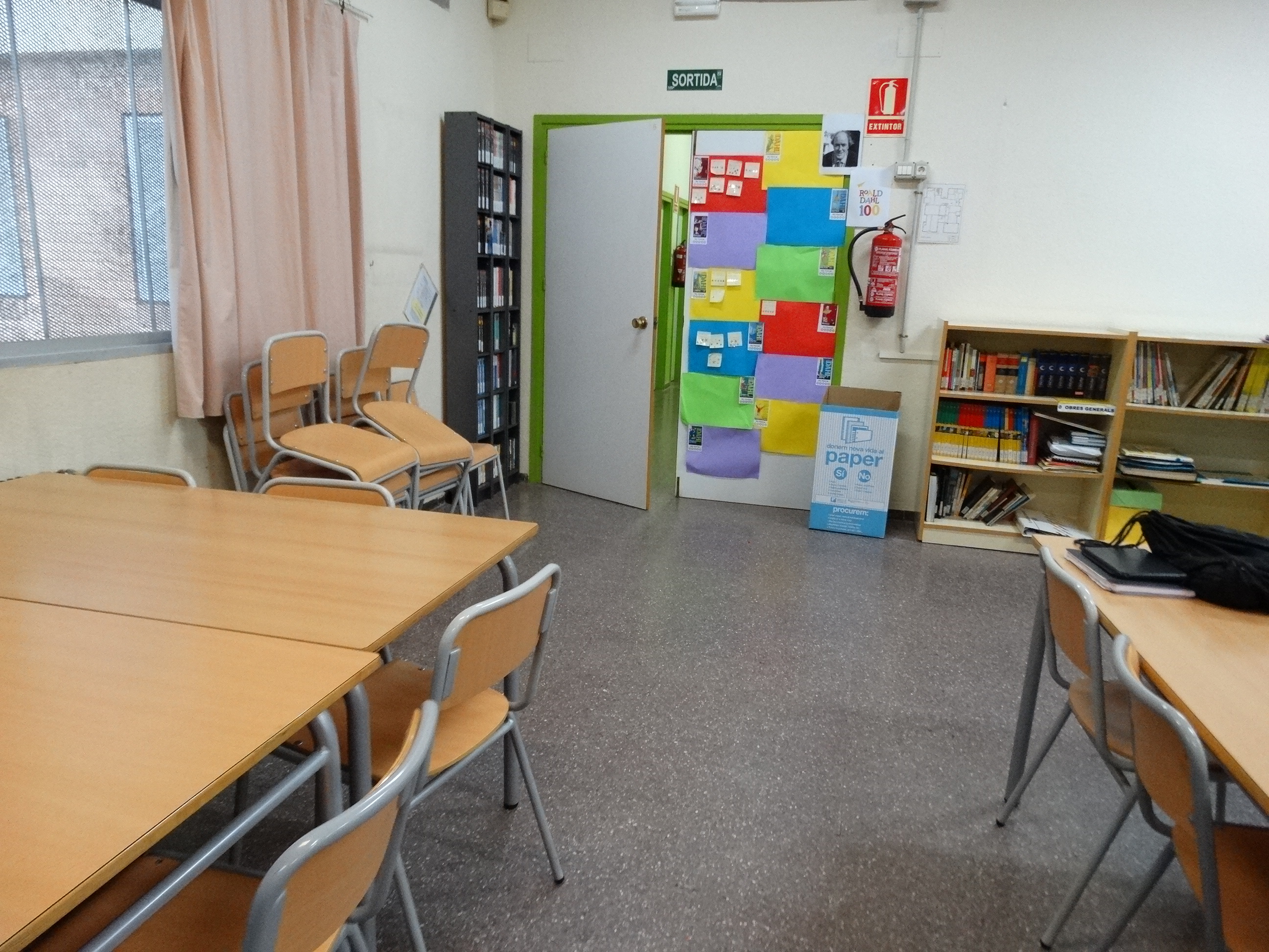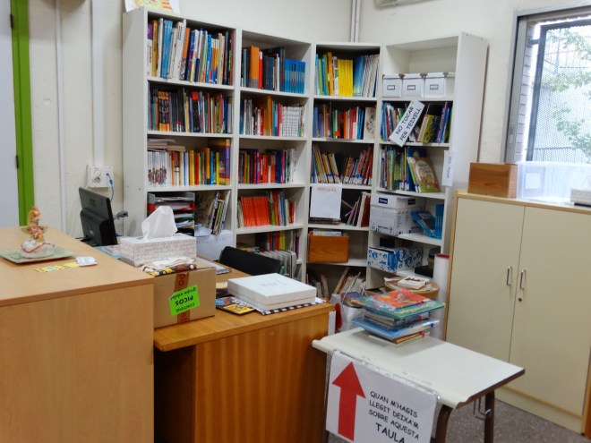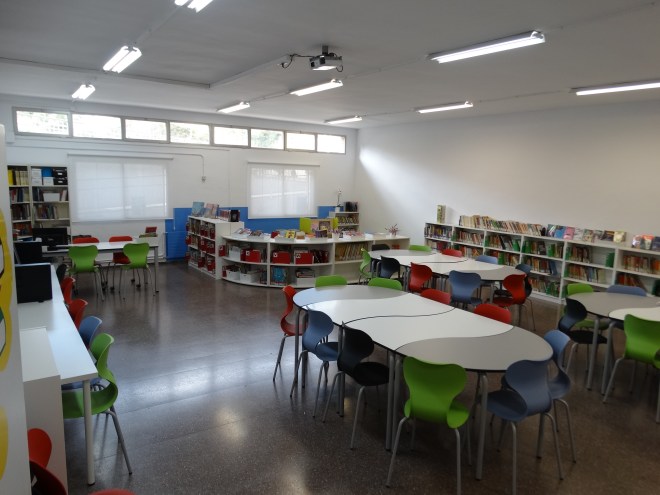 Vaig tenir l’oportunitat de compartir amb ells tot el procés de reforma, Primer fent una xerradeta a tot el claustre sobre models de biblioteques escolars, organització i activitats a fer amb l’alumnat. Després unes trobades amb la comissió de biblioteca per distribuir i reorganitzar l’espai. Han estat uns mesos intensos però el resultat és magnífic. Podeu veure les fotografies d’abans i d’ara tot seguit: