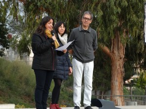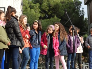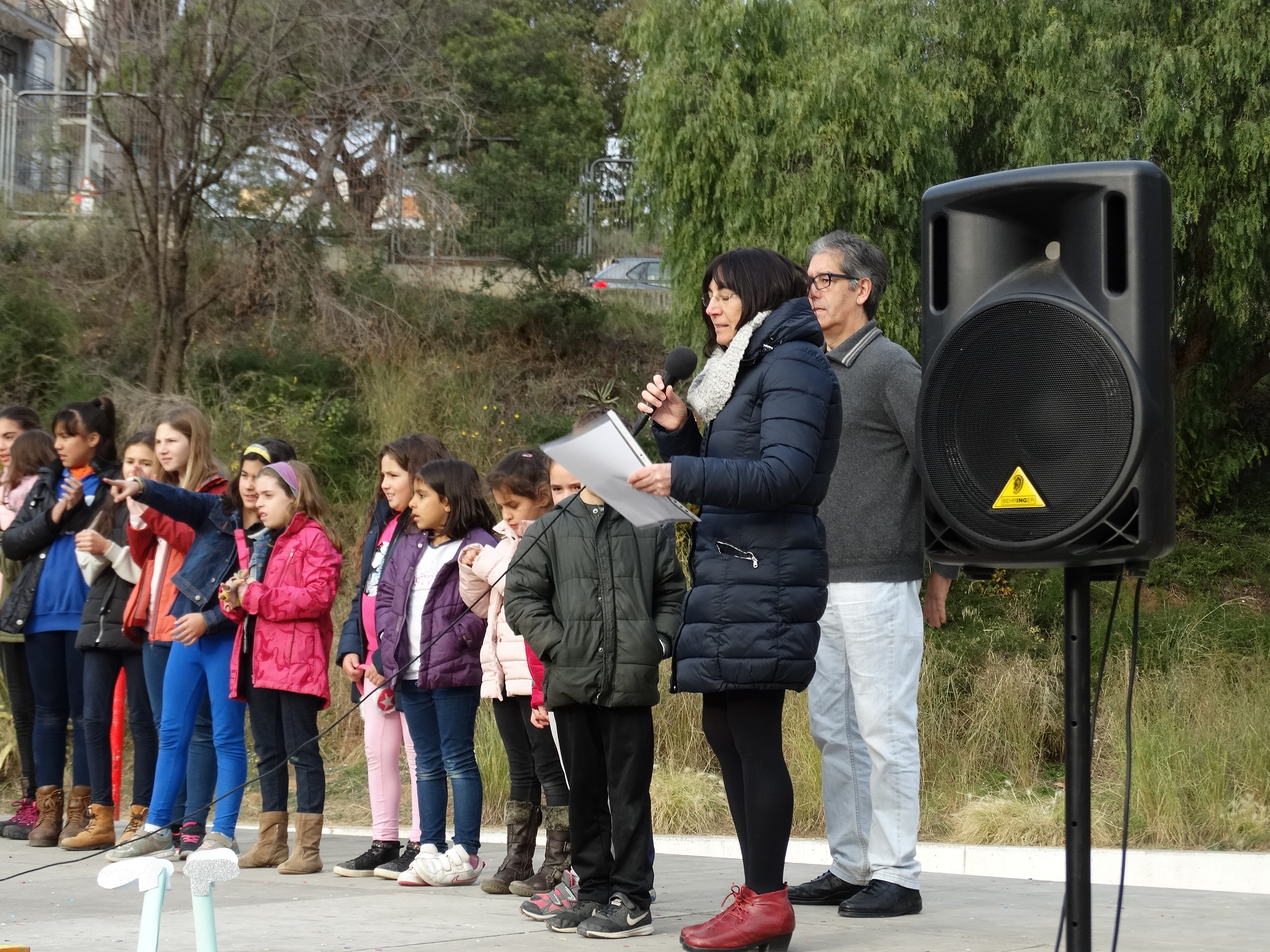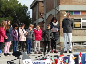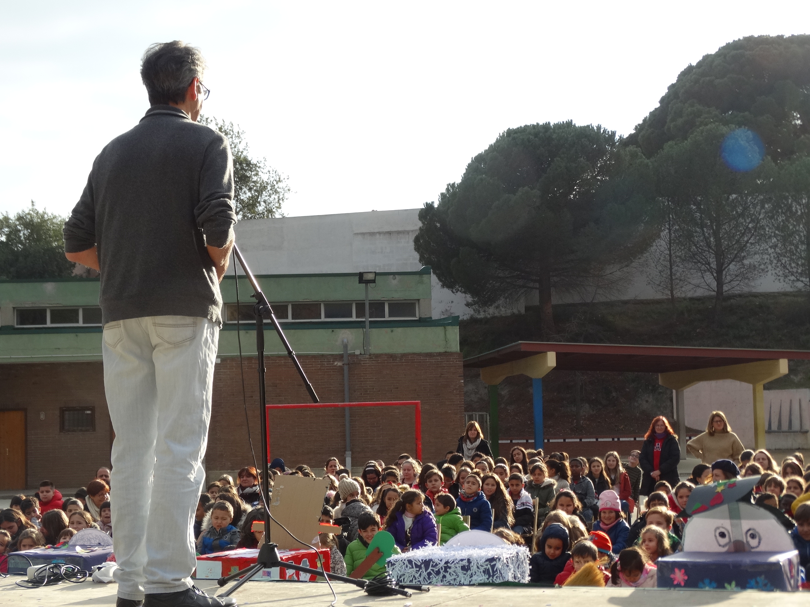 No volien acabar el trimestre sense un acte formal d’inauguració i així ho van fer el dia 20 de desembre a la tarda. Van aplegar a tot l’alumnat i alguns pares i mares al pati de l’escola per llegir frases, idees i pensaments al voltant de la lectura. Em van convidar, també a dir unes paraules però em vaig estimar més contar un conte, que sempre ve més de gust.