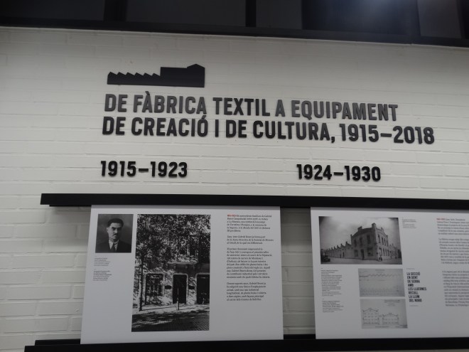 En una paret uns panells informatius que expliquen la història de la fàbrica.