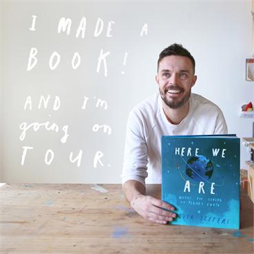 «Here we are» porta un subtítol —Notes for líving on planet earth— que ja ens indica de què va la cosa. L’autor és l’Oliver Jeffers (el de «Perdut i trobat», «l’Increïble nen menjallibres» «Atrapat», la sèrie «els Huguis», etc) i en aquesta ocasió s’ha superat.