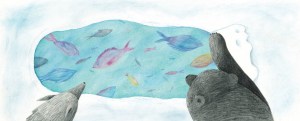 A partir d’aquí, els dos animals s’acosten, es miren i es parlen (—T’has perdut? —No, no m’he perdut. I tu? —No, no m’he perdut he sortit a passejar per sentir el fred a la cara,…) en un diàleg amable que anirà seguit d’una proposta: