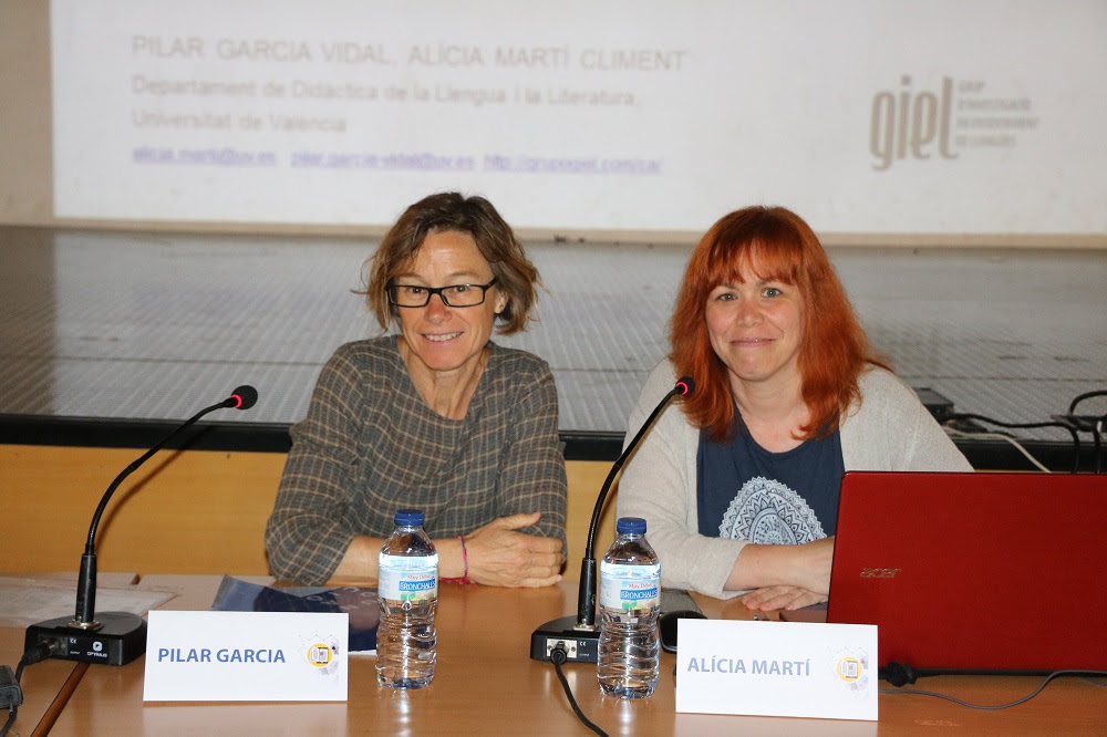 El primer a càrrec de la Pilar Garcia, doctora en Didàctica de la Llengua i la Literatura, professora de Secundària i associada de la Universitat de València (UV) i l’Alícia Martí, professora del Departament de Didàctica de la Llengua i la Literatura que ens van fer una pràctica molt divertida amb les aplicacions QR i Instagram, al voltant de les llegendes valencianes.