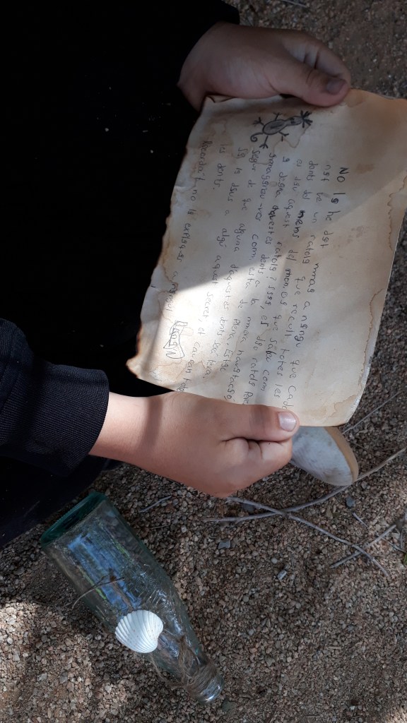 La proposta s’inicia escoltant cançons i explicant històries de missatges trobats al mar, dins d’ampolles. A mode d’exemple, s’ensenya una ampolla i es llegeix el text que conté en el seu interior.