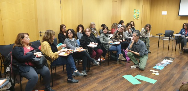 A continuació, ens vam repartir en diferents espais i a cadascuna de les sales vam enfocar un aspecte relacionat. A la que em va tocar a mi, es van fer aportacions molt valuoses. Vaig quedar content d’aquest model de Jornada en la què tothom pot opinar i no només escoltar ponència rera ponència. Molt modern, molt “coffee word”.