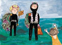 En aquest àlbum il·lustrat per l’Eva Armisén i l’adaptació d’en Santi Balmes he conegut a unes dones increïbles, les haenyeo, dones del mar coreanes que viuen a l’illa de Jeju i amb una història que ve de molt lluny i resulta modèlica, ara que tant es parla de canvi climàtic, contaminació i respecte a la natura. Faríem bé d’aprendre una miqueta de la seva manera d’entendre la relació de les persones amb la natura.