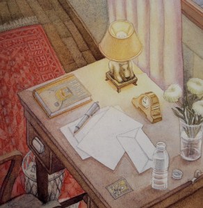 Diem que cal estar atents als detalls perquè ens indiquen què passarà o en quin altre lloc veurem determinat objecte. Una bona observació ens permetrà gaudir i entendre molt millor el relat. Per exemple, a la pàgina on la senyora surt de casa hi ha la seva taula de treball. Si ens hi fixem bé, tots els objectes (la ploma, el rellotge, les flors, la làmpada, la paperera, etc.) els tornarem a veure més endavant en llocs estranys, desubicats.
