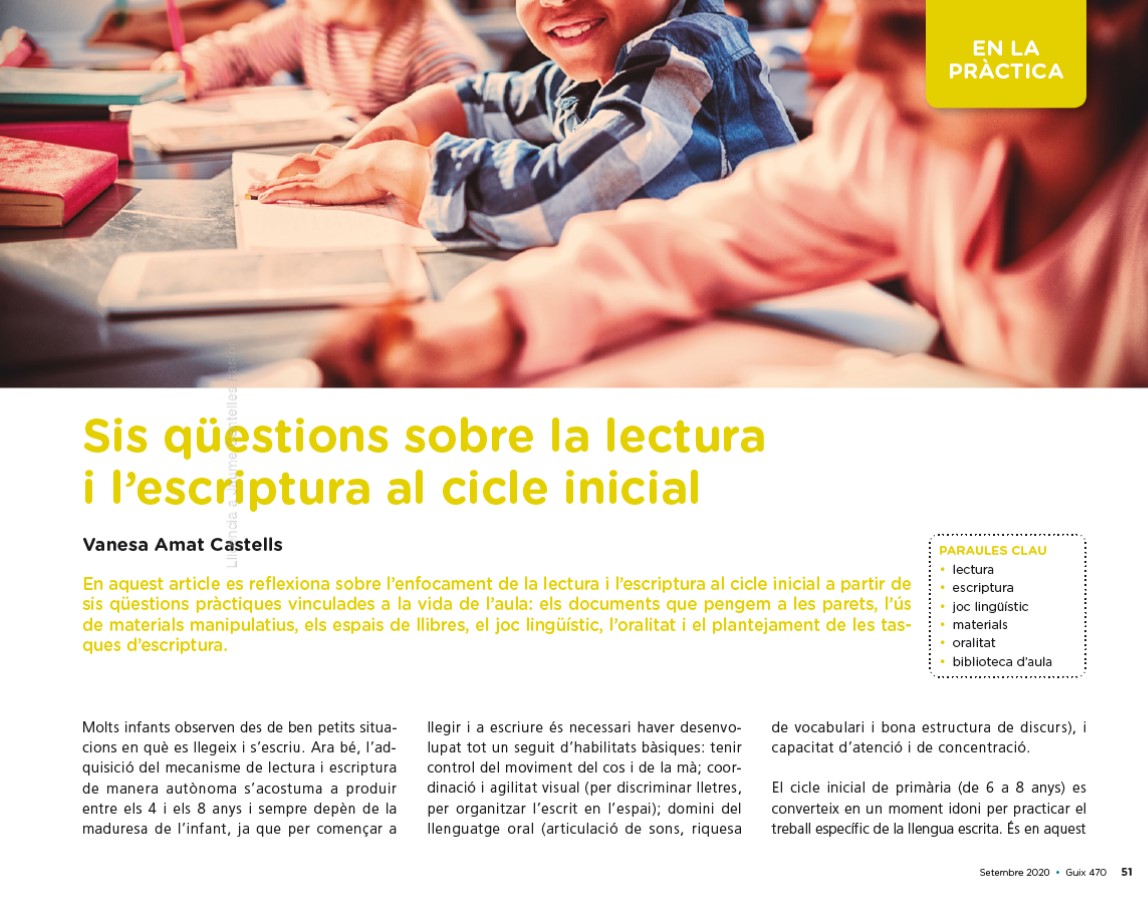 En aquest mateix número trobareu un molt bon article de la Vanesa Amat sobre lectura i escriptura a cicle inicial.