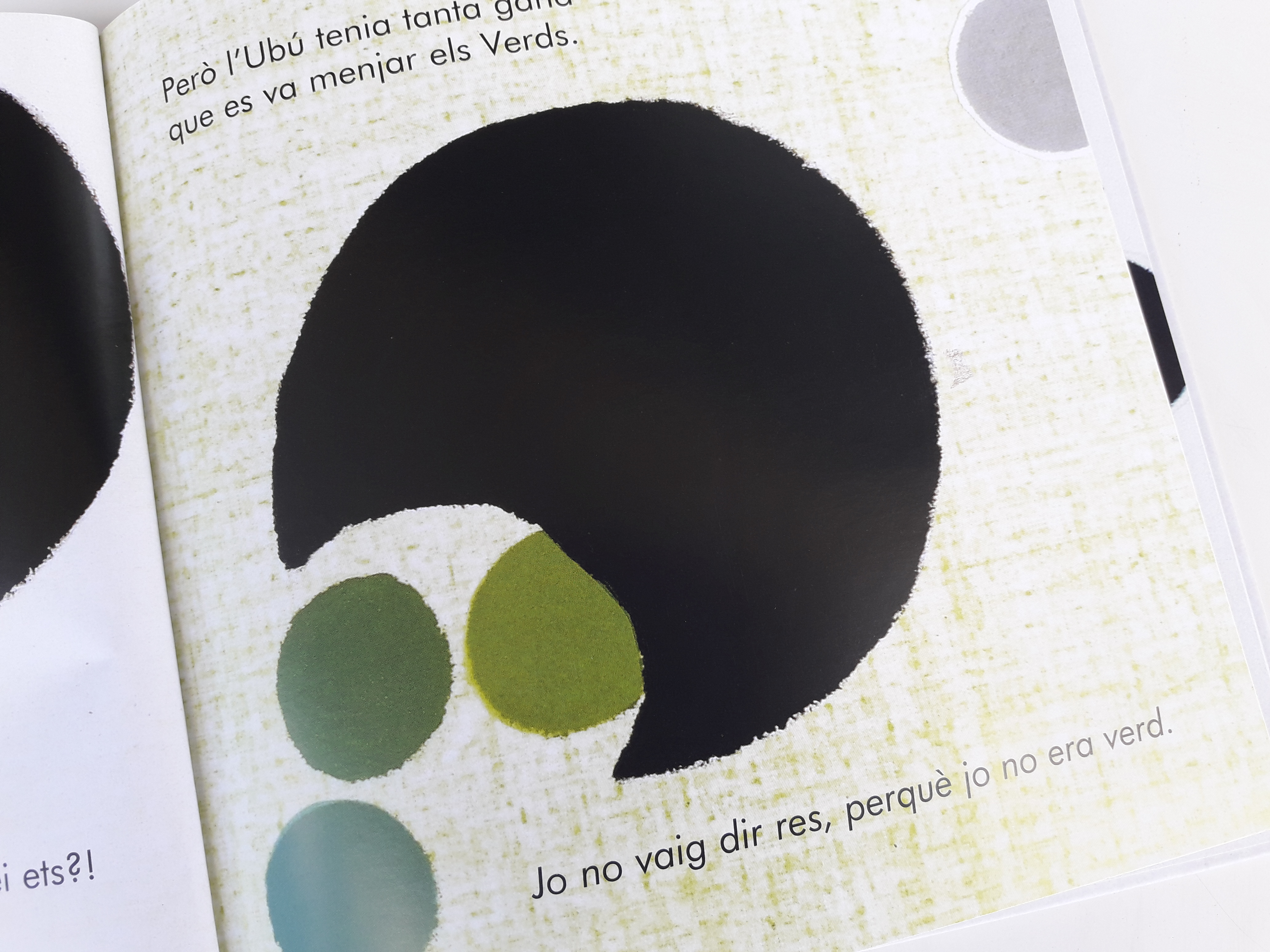Sigui com sigui, l’«Ubú» de Jérôme Ruillier, ens pot enganyar si ens deixem endur pel format o pel seu aspecte senzill, perquè quan l’obrim es veu que es tracta de petites cercles de colors i que al darrera hi ha una història amb un missatge potent, sobretot actualment en que sembla que s’acosten temps incerts. He vist que a la promoció de l’editorial Joventut el classifiquen «a partir de 3 anys». Al meu entendre, crec que tindrà molt de recorregut amb l’alumnat de cicle superior.