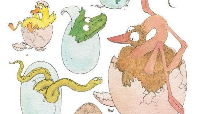 A la tercera doble pàgina els animals (l’ànec, el pingüí, la tortuga, el cocodril, la serp, etc.) han crescut i estan a punt de sortir de l’ou. En aquest moment imaginem què passarà, esclar, quan girem full. I així és. Neixen…