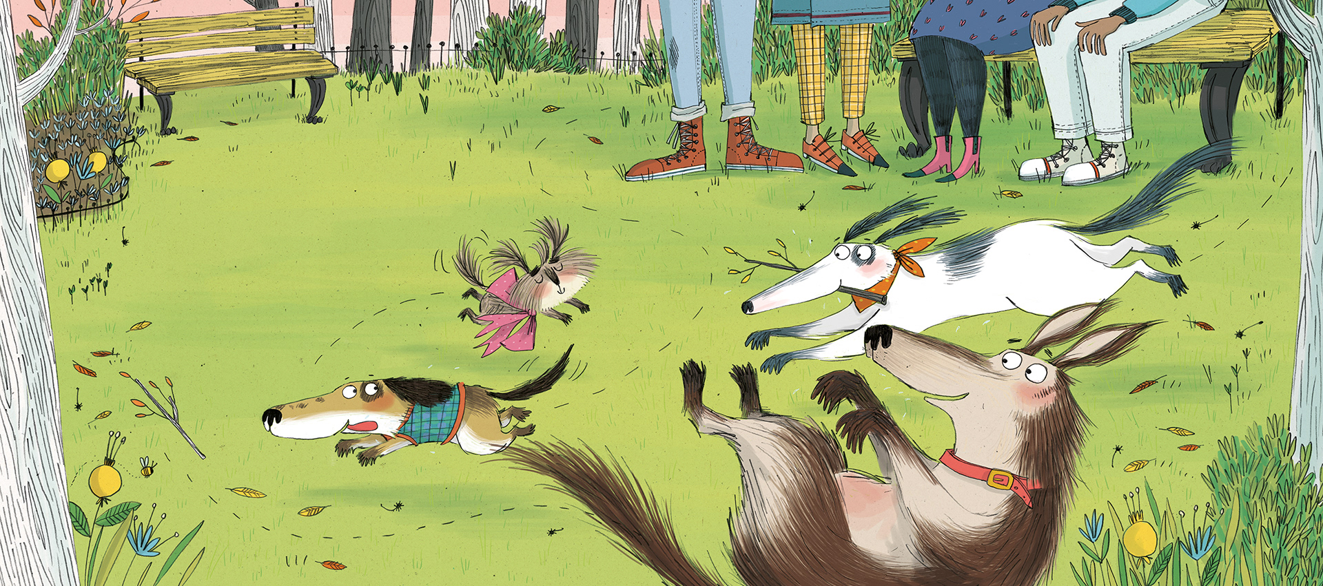 Les il·lustracions de la Kate Hindley, estilitzades, divertides, brillants i atrevides, capten molt bé el to humorístic del relat. Fixeu-vos en les cares del gos, sobretot, quan la mestressa fa o diu alguna cosa que no li agrada, o quan expressa els seus sentiments a les grans bafarades que acompanyen els diàlegs.