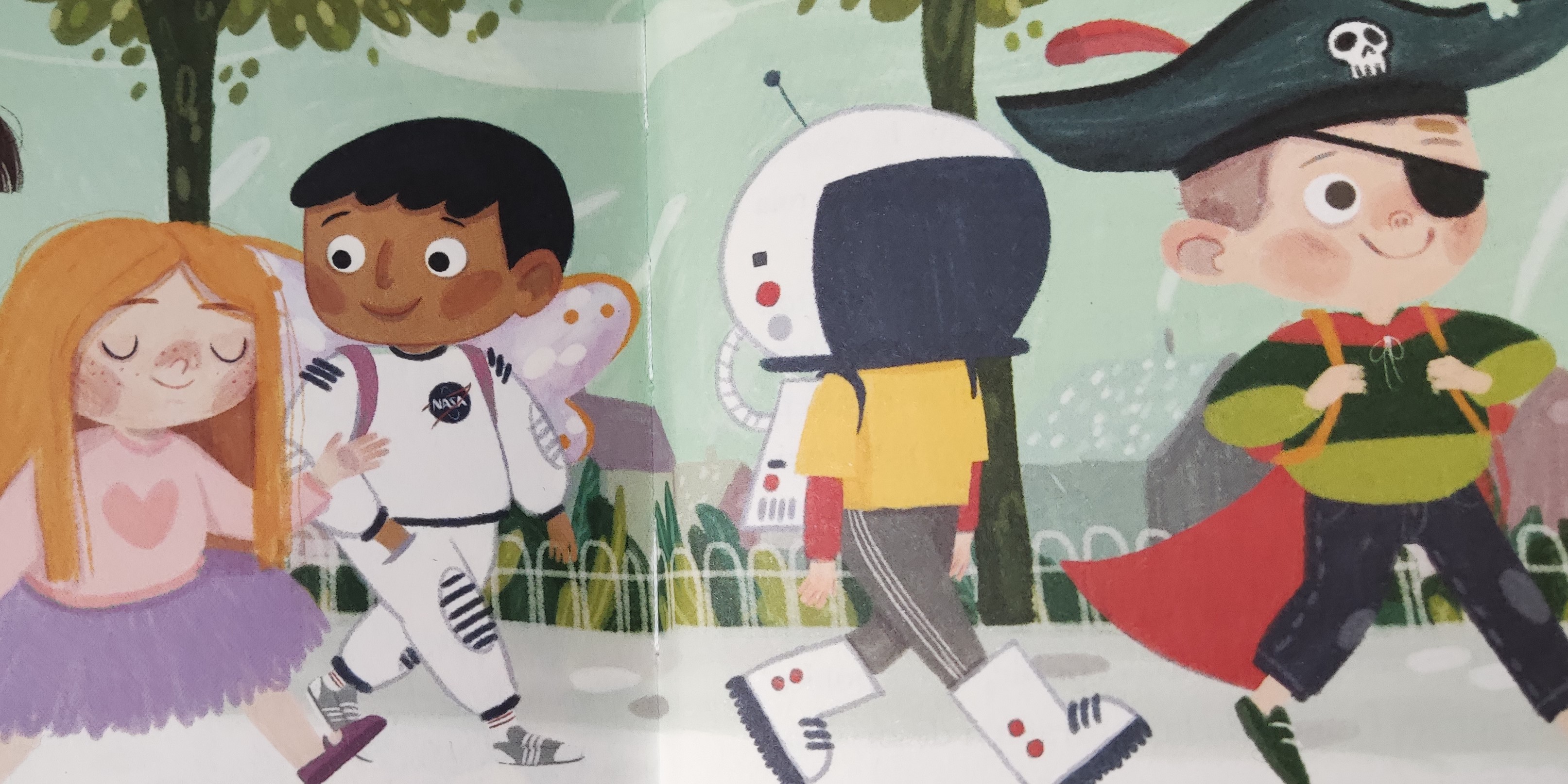 Un dels llibres que m’han agradat i m’han fet repensar la qüestió és «Fora disfresses!» i planteja aquesta qüestió però donant-li la volta perquè el protagonista, en Pau, es pregunta perquè ha d’anar disfressat a l’escola, volent dir que l’uniforme no l’identifica, perquè ell preferiria posar-se un tutú, unes ales de fada o el seu vestit d’astronauta, com quan és a casa.