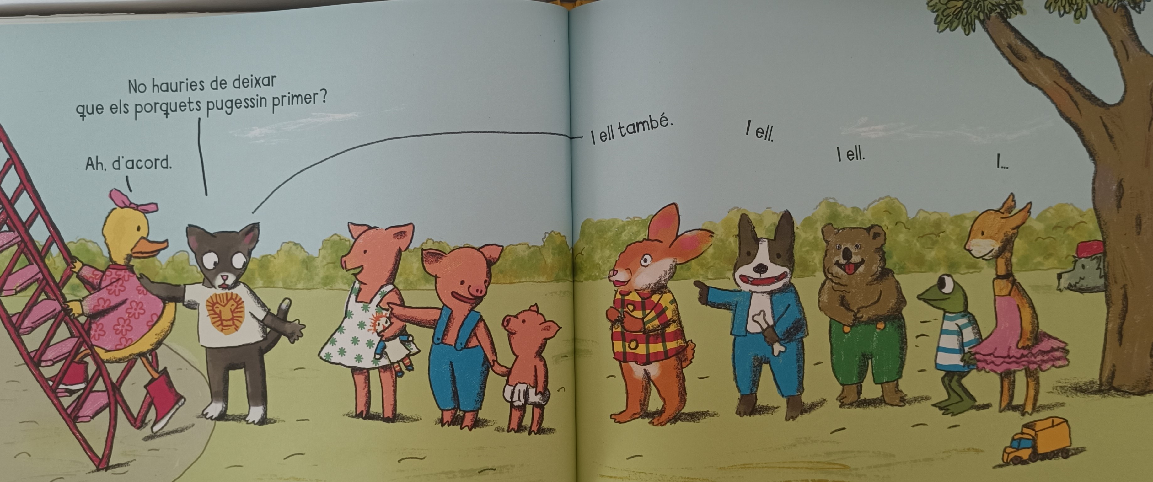 Un bon àlbum per llegir en veu alta i per analitzar les imatges i les expressions dels personatges. Una lectura compartida és recomanable i segur que els infants entenen el sentit del relat perquè són situacions compartides.
