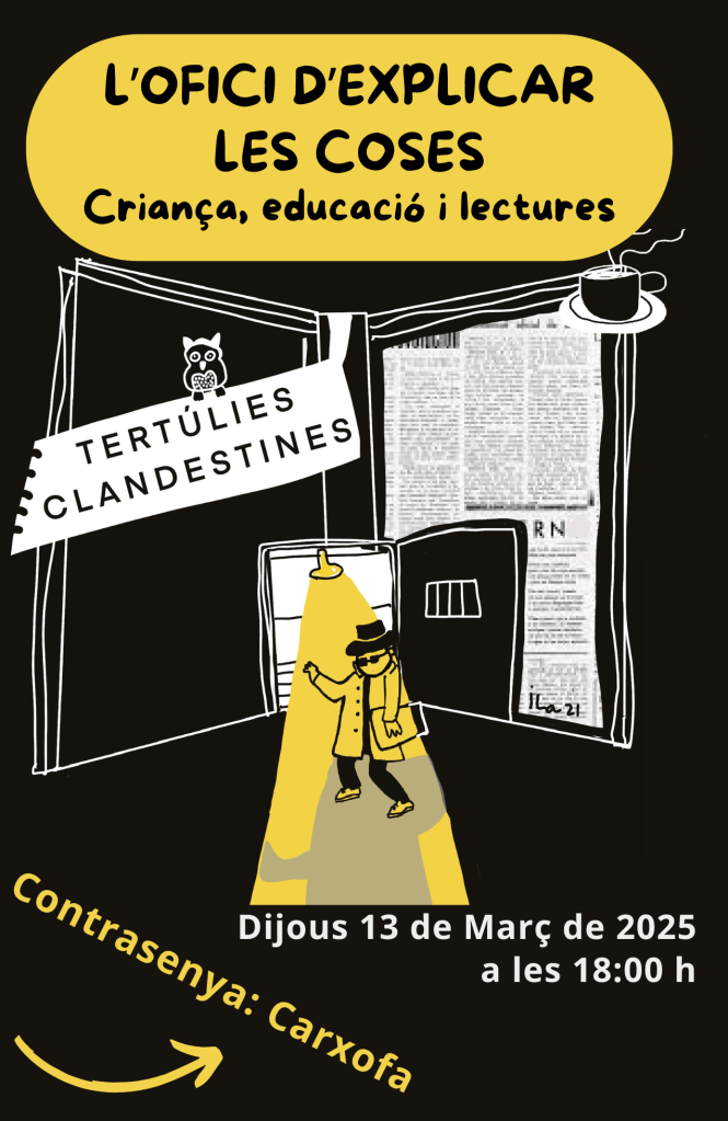 En aquesta clandestina parlarem d’educació, de joves, de lectures, de pares, mares, mestres i de com està la situació dels centres educatius actualment. Ho farem de la mà d’una persona sàvia que ha llegit gairebé tots els llibres que puguem imaginar sobre el tema i que coneix a persones com Francesco Tonucci, David Bueno, Marina Garcés o Pep Guardiola, per citar-ne alguns.