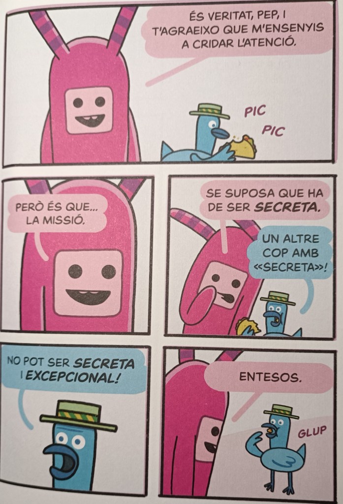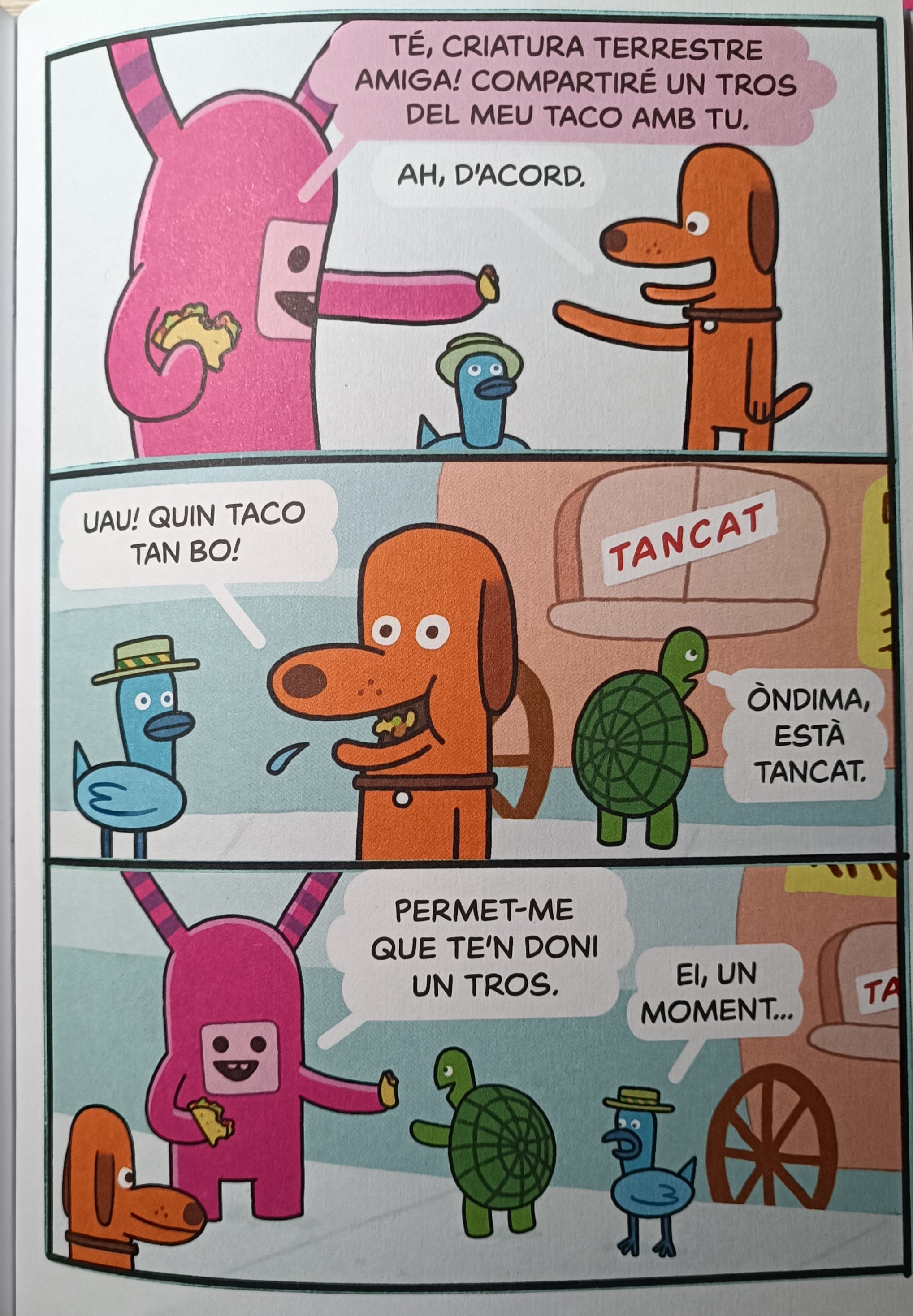 Les aventures gràfiques adreçades als primers lectors tenen força èxit. Em ve al cap la sèrie de Narval i Medu. També recordo el colom que volia conduir l’autobús. Històries divertides, hilarants per moments, que conviden a gaudir de la lectura.