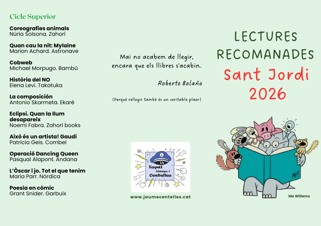 Com cada abril, us comparteixo el tríptic amb la meva selecció per si voleu fer-hi una ullada.Al final, us podeu descarregar el tríptic. Son dues pàgines fetes amb canva que, un cop impreses a doble cara, es poden plegar i coincideixen perfectament.