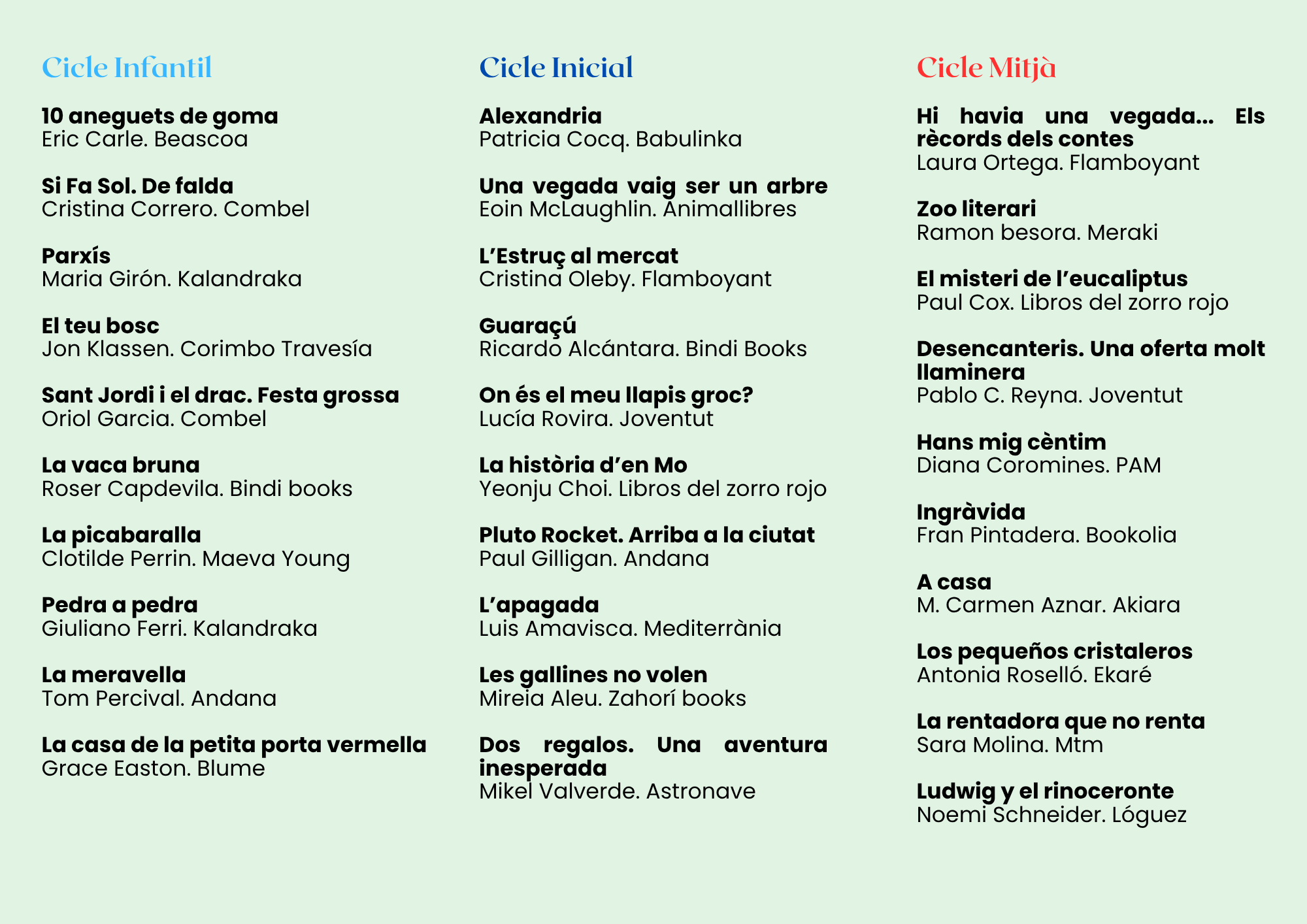 Com cada abril, us comparteixo el tríptic amb la meva selecció per si voleu fer-hi una ullada.Al final, us podeu descarregar el tríptic. Son dues pàgines fetes amb canva que, un cop impreses a doble cara, es poden plegar i coincideixen perfectament.