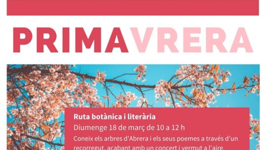 Ruta botànica i literària. Vine a fer una passejada i a conèixer els arbres d’Abrera sota el guiatge d’un expert en botànica i escoltant poesia a l’aire lliure. La ruta acabarà amb un concert vermut. A càrrec d’Alfred Bellés (naturalista), Josep Pedrals (poeta), Alba Hinojosa (violinista) i Antonia Parapar (violoncel·lista).