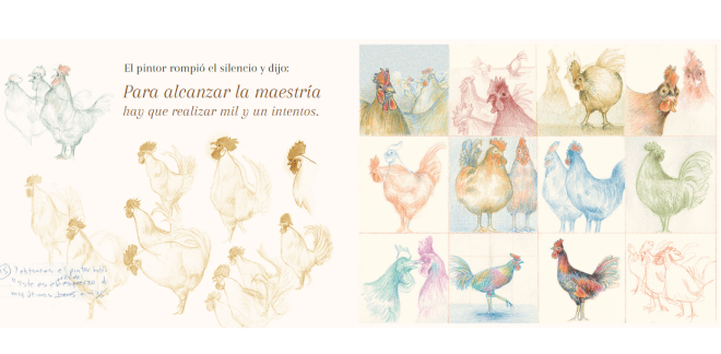 Les il·lustracions estan fetes de manera artesanal. L’autor, Tohby Riddle, primer dibuixa els personatges, després els pinta, a continuació els retalla i finalment els enganxa sobre el fons. Una mena de collage que resulta bonic de veure.