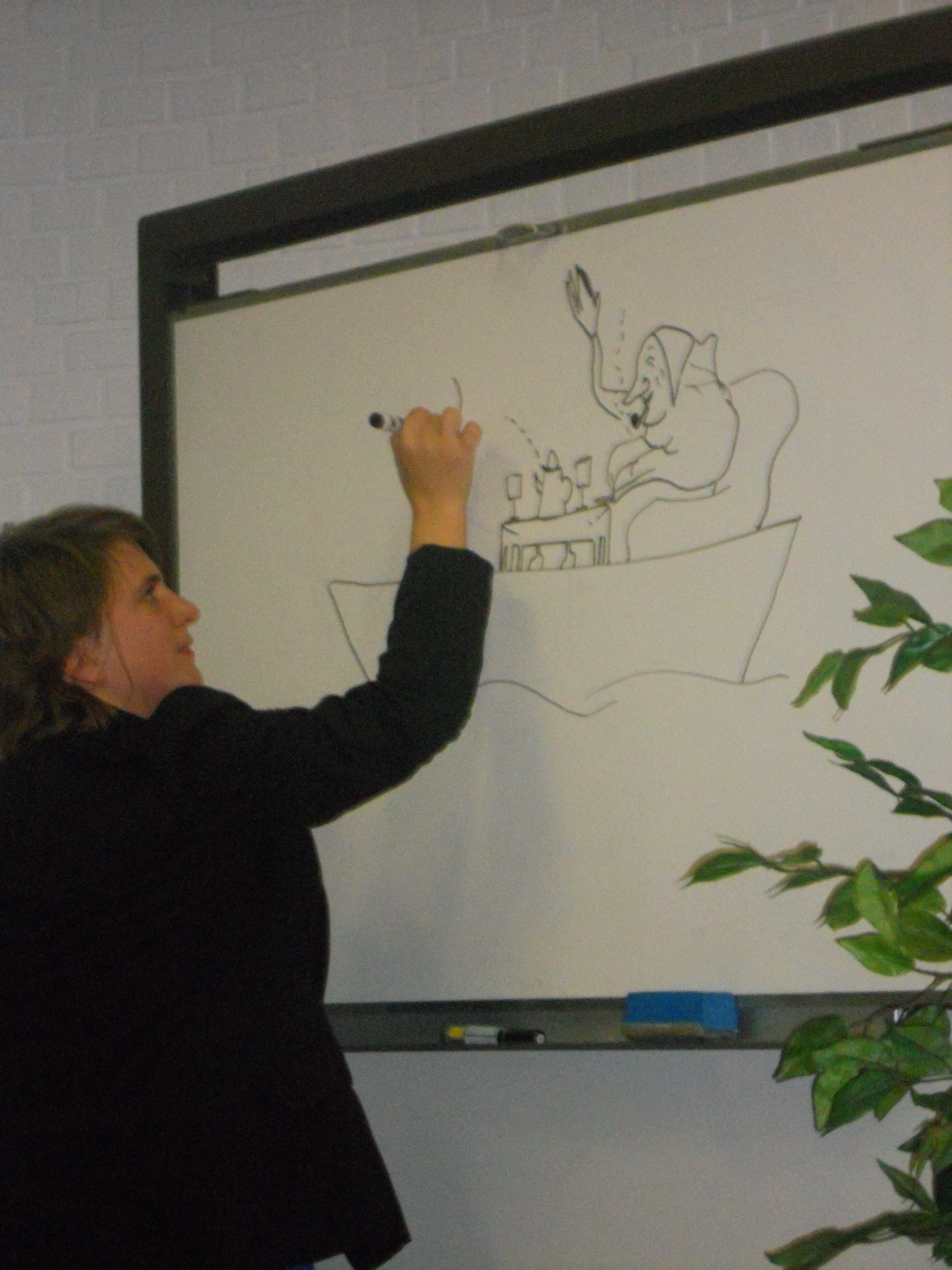 Vaig començar explicant un clàssic que no s’ha arribat a traduir a casa nostra: «The wednesday surprise», un relat que explica com l’àvia i la seva neta, la noia que narra la peripècia, estan planejant una meravellosa sorpresa per a l’aniversari del pare. Cada dimecres, mentre la mare treballa fins tard, l’àvia ve amb una bossa plena de llibres i llegeix amb la neta.