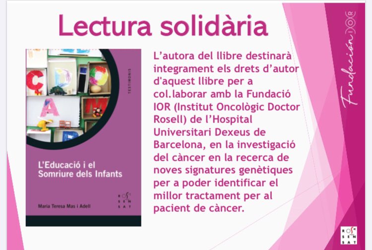 L’últim que he llegit m’ha agradat especialment. Es titula «L’Educació i el Somriure dels Infants» i l’ha escrit la Maria Teresa Mas i Adell. Es tracta d’un assaig ben escrit i sobretot, ben documentat. M’han agradat molt dos dels capítols, el que dedica a la immersió lingüística i el que fa una lloança de la biblioteca escolar.