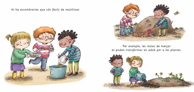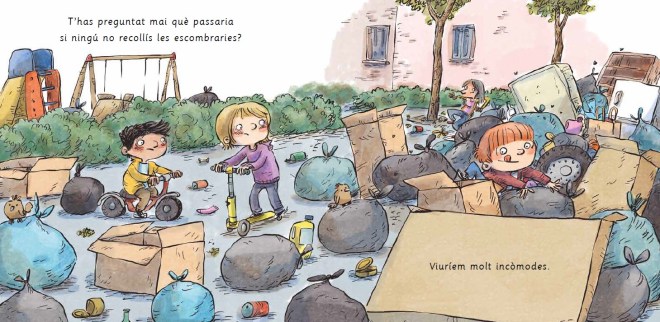Un dels que m’ha agradat és «Escombraries i més escombraries» adreçat al cicle inicial. Editat per Barcanova, forma part de la col·lecció MISSIÓ PLANETA.