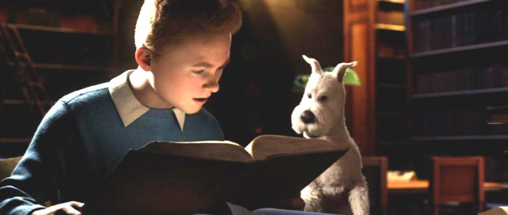 Tintín lee en voz alta y para que los espectadores nos interesemos por los misterios que envolvieron aquella nave, de tanto en tanto se detiene y se dirige a su inseparable Fox terrier para preguntarle, por ejemplo, “¿Qué escondería el barco. Milú?”