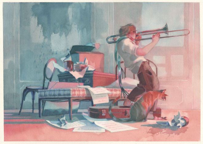 I bé, després he anat trobant els seus dibuixos i les seves aquarel·les en diverses publicacions. Em va impressionar «L’espera» i em va recordar una tendència recent a antropoformitzar els personatges (ho vam comentar AQUÍ, recordeu?)