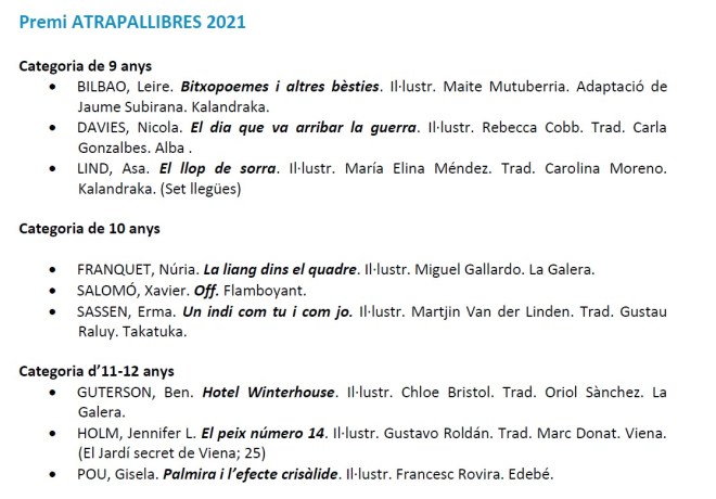 Tal com podem llegir al mateix web, els llibres triats enguany per a cada categoria són: