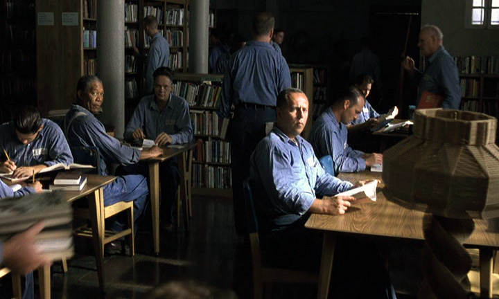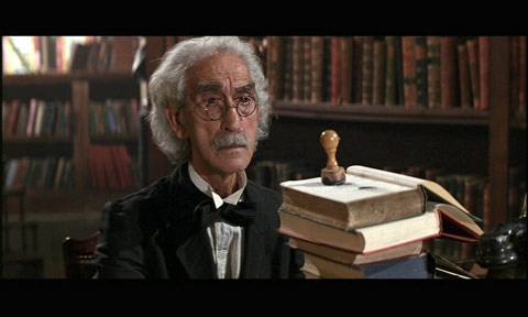 En la escena siguiente, Matilda va a la biblioteca que se nos presenta como un espacio enorme, como una catedral. Con la ayuda de unos planos contrapicados que magnifican el lugar, vemos a la bibliotecaria, la señorita Phelps – su nombre recuerda la palabra inglesa “help” (ayuda) – detrás de un frío mostrador, rodeada de paredes de mármol, altos techos y vidrieras, como si fuera un obispo a punto de una celebración. Podemos pensar que es una persona fría pero, en cambio, se muestra muy amable y cordial con la niña.