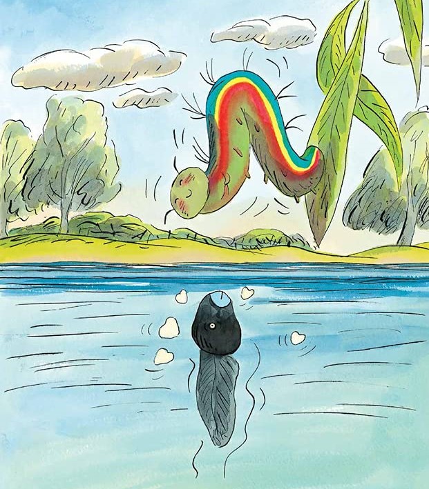M’ha agradat també com s’anomenen els capítols perquè ens anticipen què ens trobarem i, alhora, poden ser un joc d’imaginar què passarà. Per exemple, el primer “L’armari o: un bon cop de cap amb la bola del món” és prou explícit, com ho són els altres deu. Si llegim el capítol tercer “A casa dels oncles o: adults saltant i caient de cul en un llit elàstic”, o el desè “La baixada o: un garatge robat i el gust que té la neu groga”, l’autora ens està induint a entrar en una situació que pot ser trista en el cas del tercer o esbojarrada en el cas del desè.