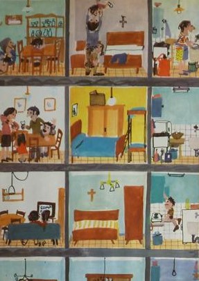 En els seus dibuixos s’aprecia la suavitat cromàtica, la tendresa que envolta els personatges, tot un reflex de la vida quotidiana.