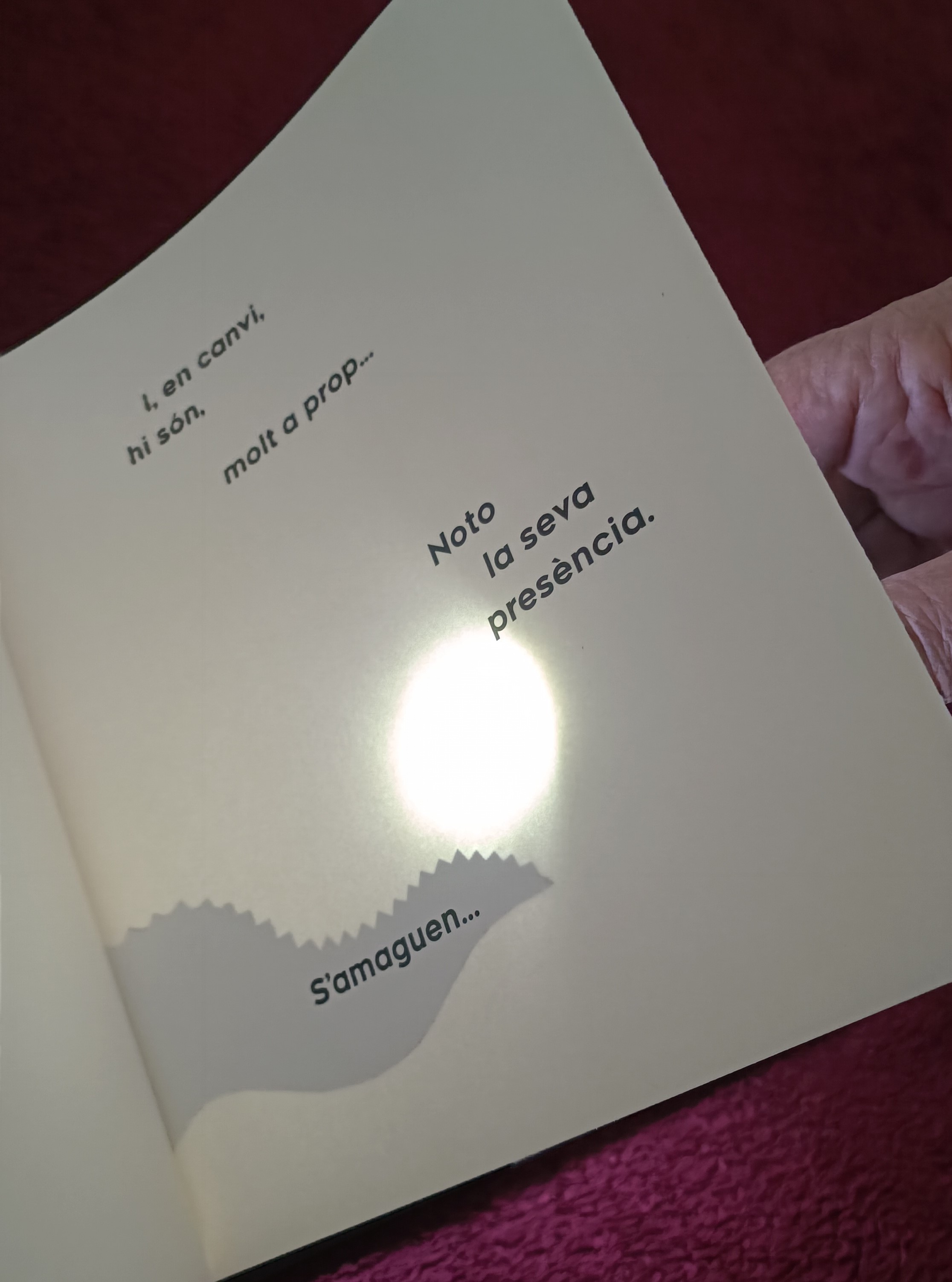 Mentre anem llegint, cap fer passar el raig de llum de la llanterna per darrere les pàgines.