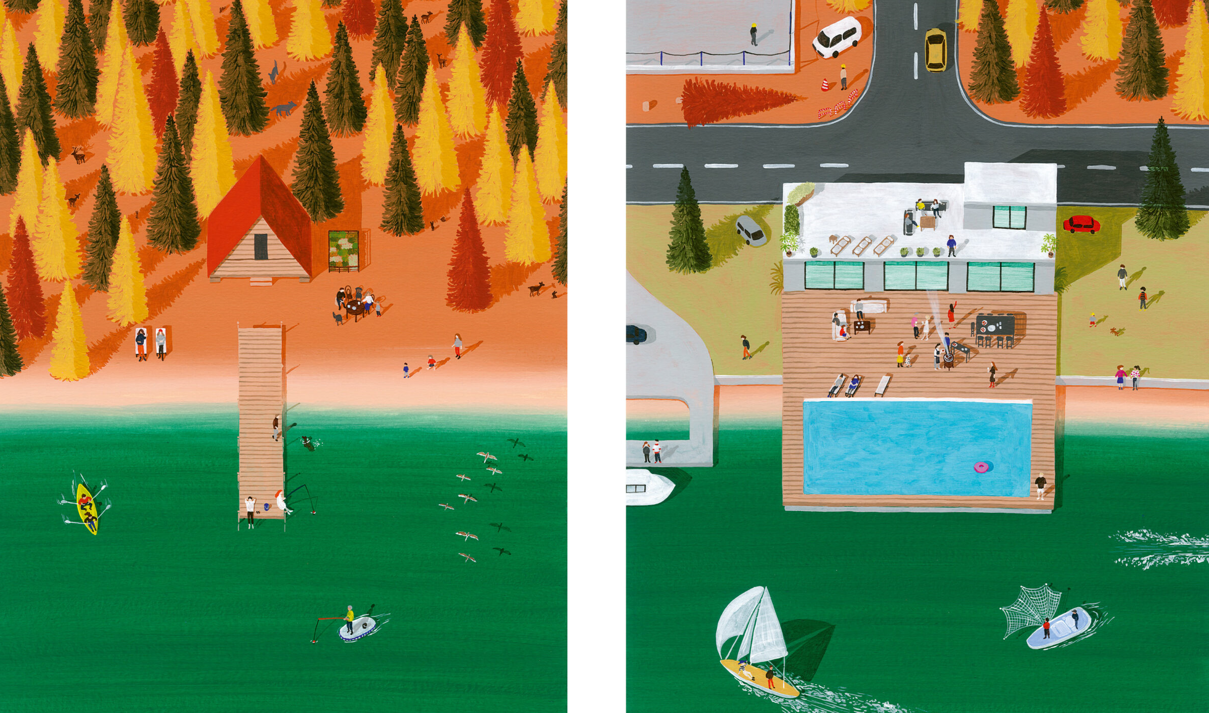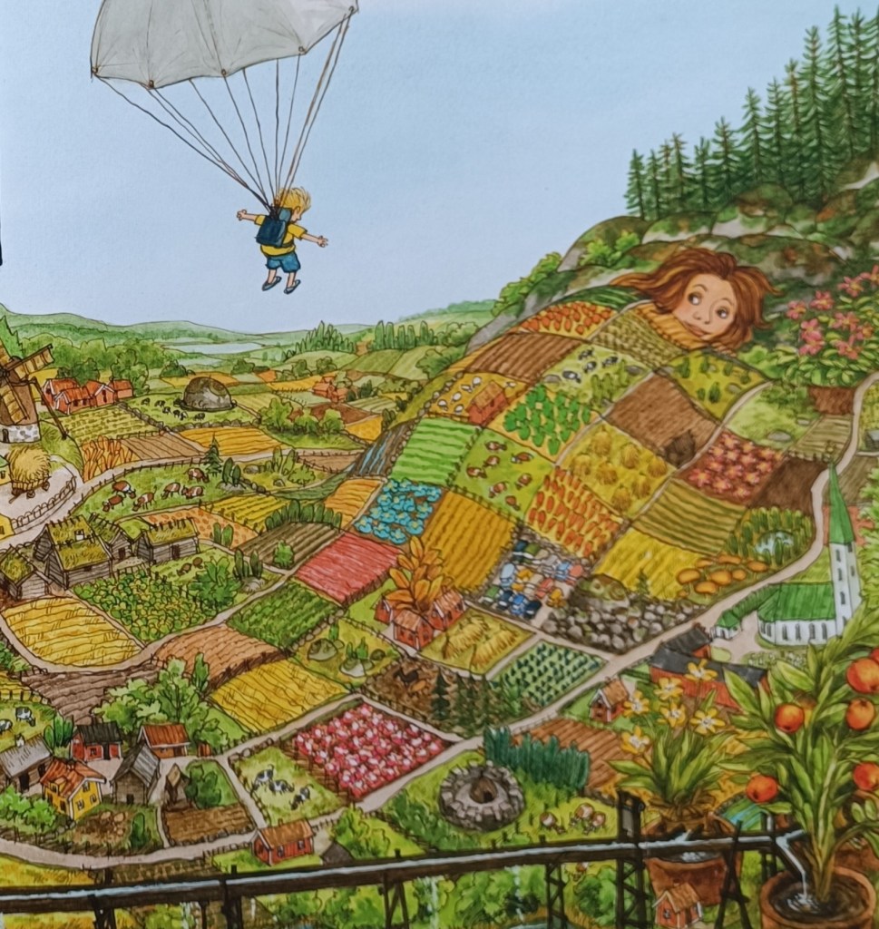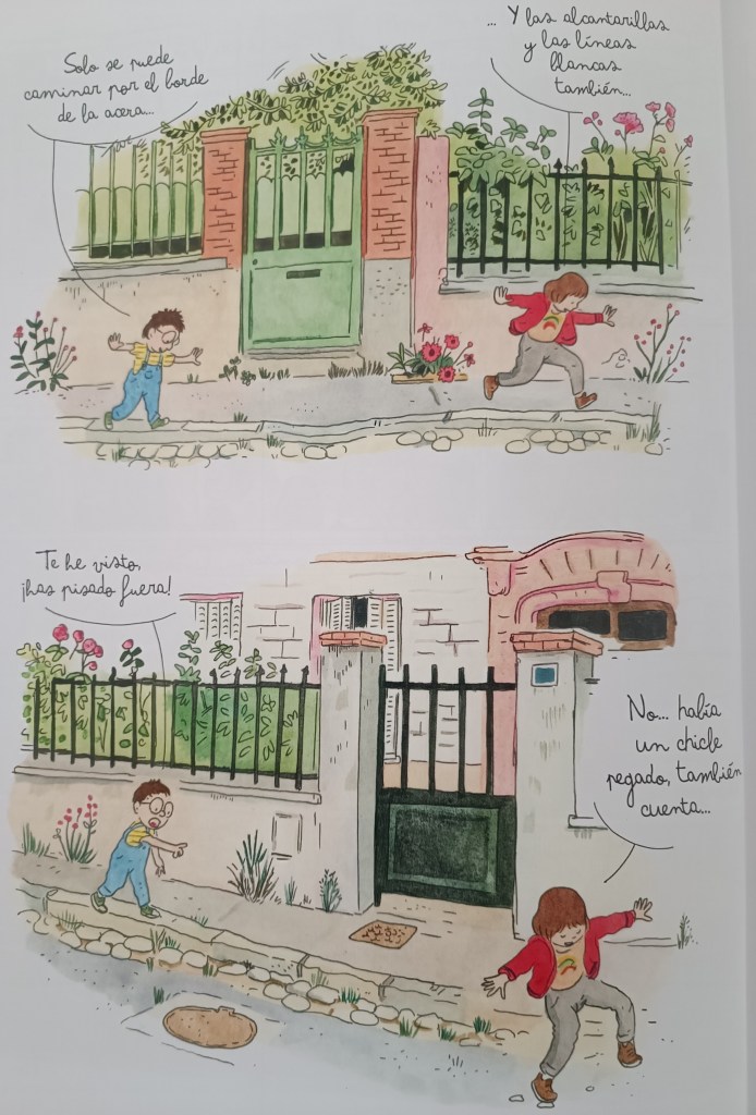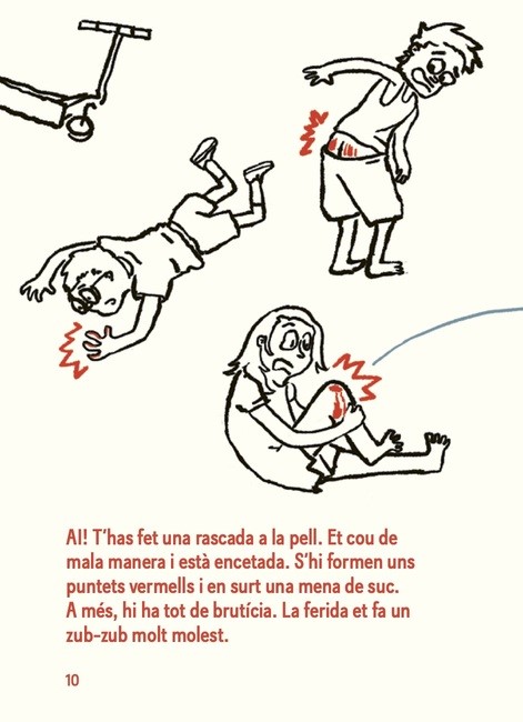 A cada doble pàgina, al full de l’esquerra llegim la pregunta i tot seguit la resposta. A la dreta, unes imatges precioses de la Rocío Bonilla que fa la interpretació de la pregunta.