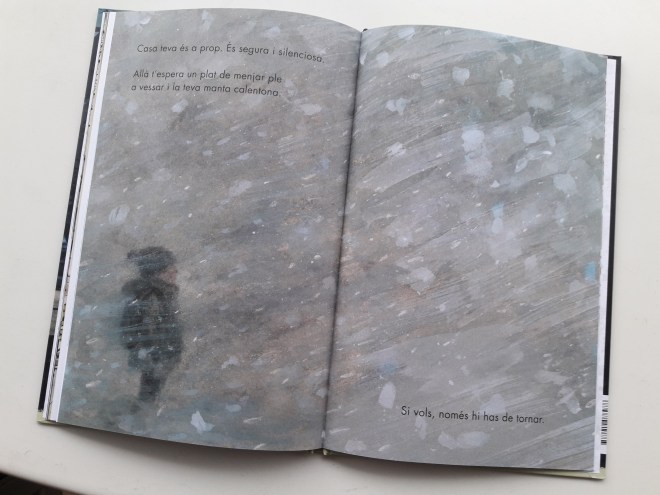 Quan el nen torna cap a casa —el lloc més segur i tranquil— la història fa un gir i descobrim què era el que estava buscant i no trobava mentre caminava sota la neu.
