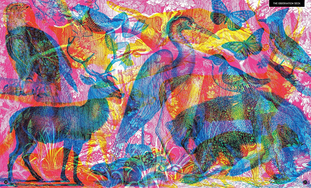 El llibre presenta 10 hàbitats o ecosistemes que van des de la selva congolesa, passant pels Andes, els boscos de sequoies d’Amèrica del Nord, les Filipines, etc. i ho fa demanant la interacció del lector , el qual disposa d’una lent de visió (recorda a les ulleres 3D) amb tres panells (vermell, verd i blau) transparents que detallen de forma precisa, les imatges de la flora i la fauna locals segons el filtre que hi posem: Si és el vermell apareixen els animals diürns, la lent blava revela els animals de la nit, i la lent verda mostra les plantes i els paisatges.