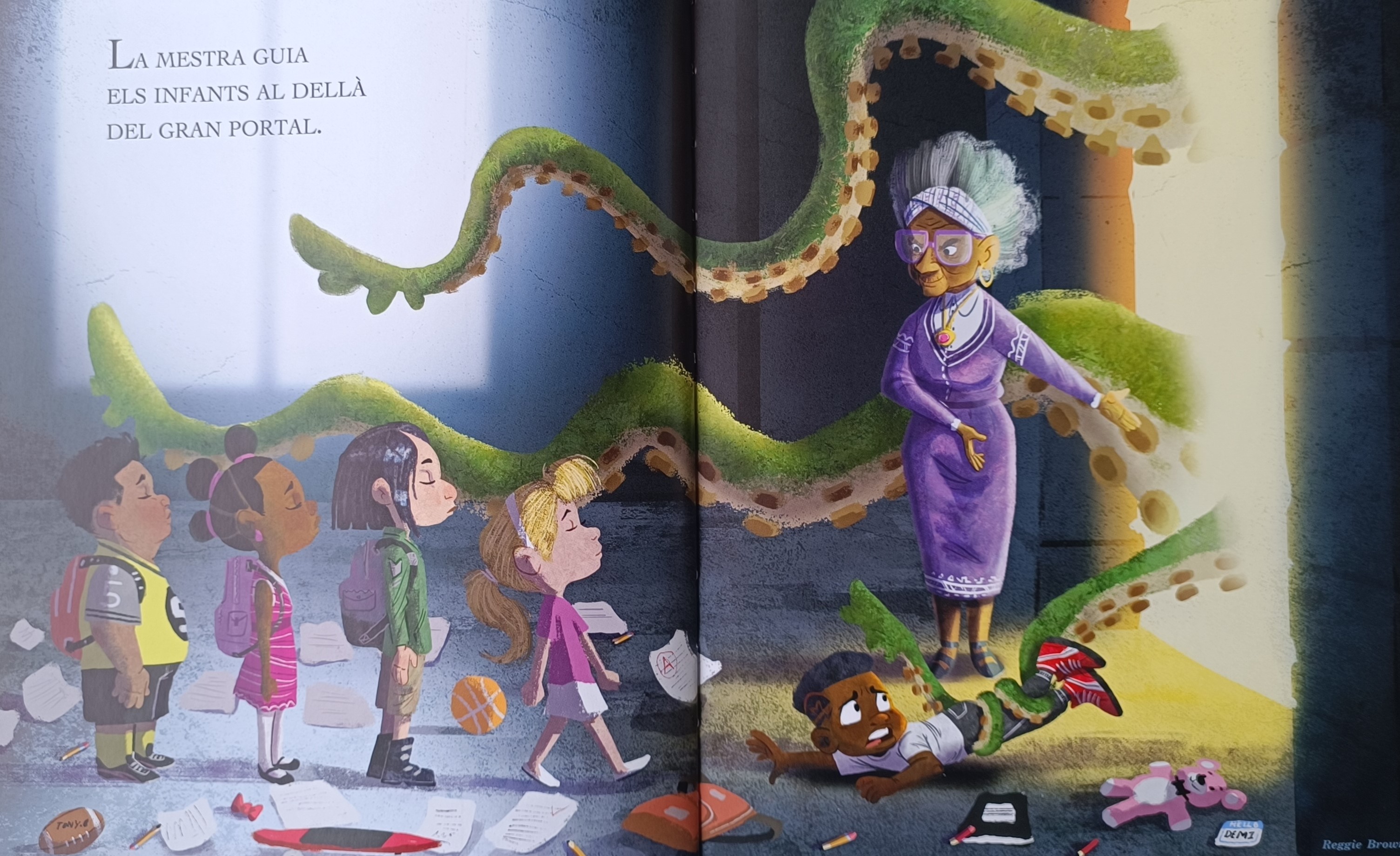 Va venir a l’Espai Llamp i Centelles gràcies a la mediació de la Montse i en Carles de la llibreria “Lectors, al tren!” on el dia següent va inaugurar una exposició amb originals d’algunes de les seves obres (Caputxeta vermella, Bibliotecàries a cavall i Un regal d’hivern).