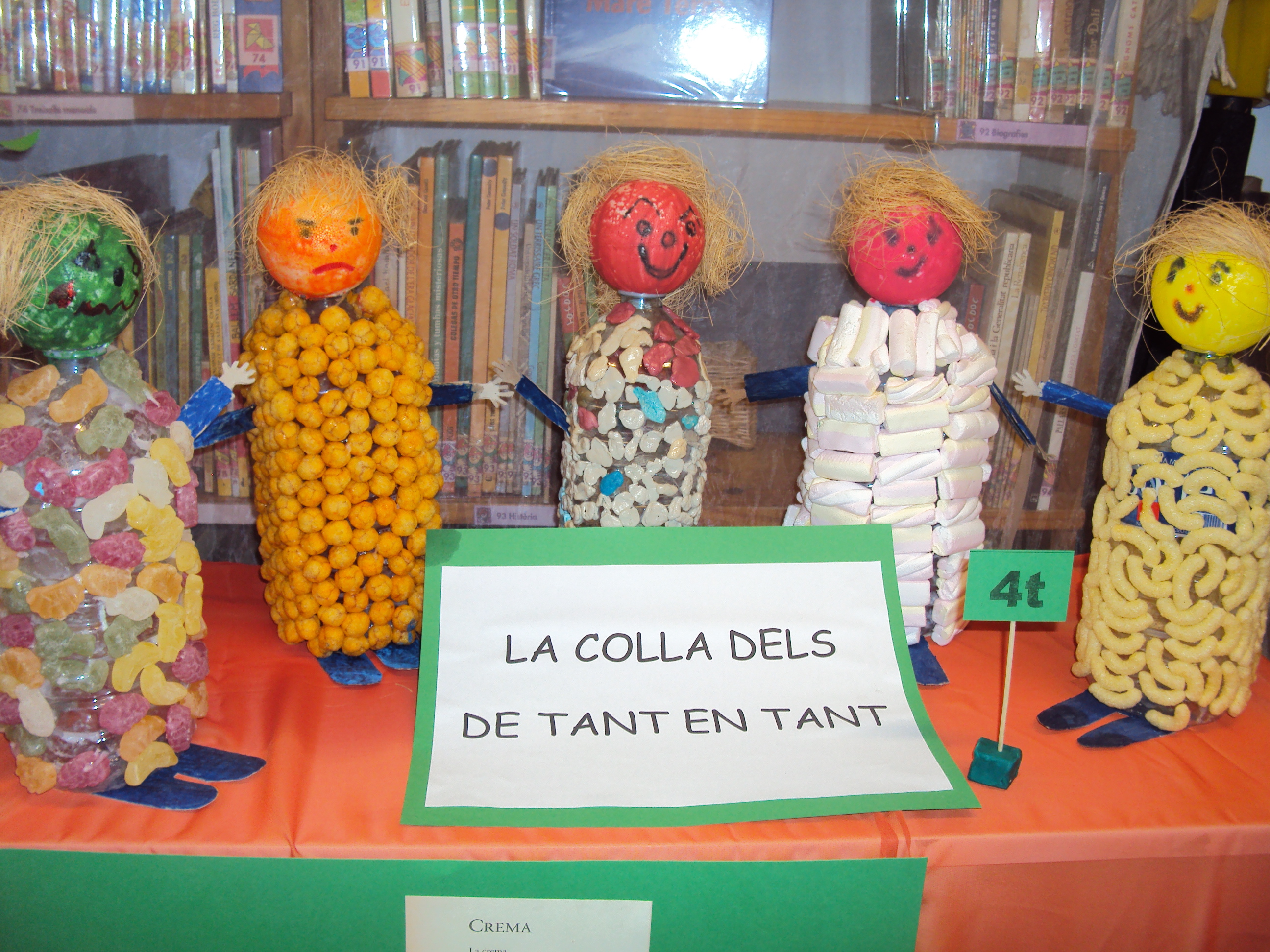 El grup de quart va investigar sobre la piràmide dels aliments i han fet unes maquetes. Una és el gegants dels bons costums i dels hàbits saludables i les altres són “La colla dels de tant en tant”, aquells aliments que es poden menjar de tant en tant i estan a la part alta de la piràmide.