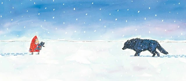 Es narra una història commovedora de com un dia d’hivern, una nena amb un impermeable vermell torna a casa i un temporal de neu fa que es desorienti. Just en aquest moment de desesperació sent uns udols i troba a un cadell de llop que també està perdut i allunyat de la seva llopada.