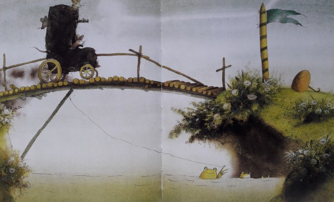 S’acaba de reeditar i és una bona notícia. A l’escola teníem una versió — vull recordar que editada per Grijabo— amb uns textos que sobtaven per innecessaris i que després vam saber que l’edició original anglesa només tenia imatges. Molt millor, esclar. L’editorial Kalandraka ha recuperat aquests clàssic, sense text, i ho aplaudim. Per què? és un conte que ens parla de manera prou eloqüent sobre la inutilitat de la guerra, de totes les guerres. Els personatges que hi apareixen, pintats amb tons suaus, són granotes i ratolins que es barallen entre si. La situació s’accelera ràpidament fins a esdevenir un conflicte que pren forma de guerra destructiva.
