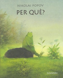 L’absurditat de la guerra, la violència, la venjança, la devastació i la mort es deixen veure, amb tota la seva cruesa, en les pàgines d’aquest llibre visual; una faula que comença amb una bucòlica imatge d’una granota gaudint de l’aroma d’una flor, fins a la irrupció d’un ratolí que l’ataca per arrabassar-li la flor. Sorgeix llavors una lluita entre dos bàndols cada cop més nombrosos, en individus i en mitjans bèl·lics que deixa pas a emboscades i bombardejos. D’un prat florit passem a un lloc desolat; d’una minúcia, a un gran conflicte sense haver intercedit ni una sola paraula. La Segona Guerra Mundial va deixar una profunda petjada en la infància de Nikolai Popov: l’avançament de l’exèrcit nazi sobre la Unió Soviètica, les sirenes marcant la fugida de la població cap als refugis, jugar entre les restes de les bombes sense comprendre el seu efecte letal fins que una d’elles va esclatar a les mans d’un altre nen, el record dels soldats mutilats regressant després de la rendició alemanya… Però va ser l’obra de Tolstoi, Dostoyevsky, Hemingway i Remarque la que va decantar la ideologia pacifista de l’autor de “Per què?”.