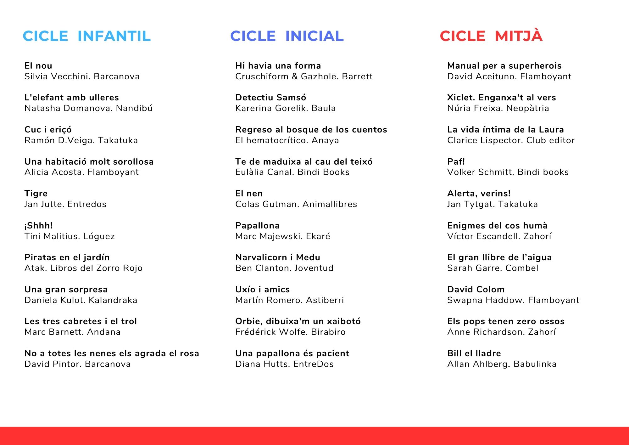 Des que vam començar aquest blog, acostumo a pujar els tríptics de Nadal i Sant Jordi amb 40 bones lectures, deu per a cada cicle de Infantil i Primària.