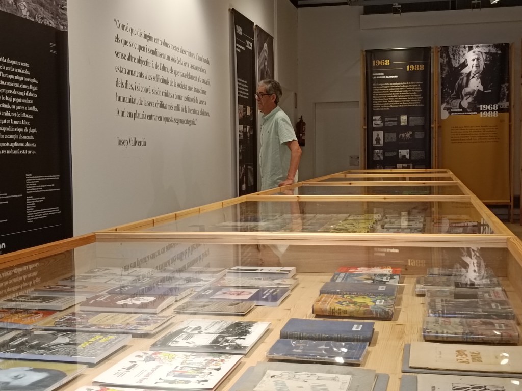 I si encara no ho heu fet, teniu fins al 11 de setembre per deixar-vos caure pel Palau Robert. Val la pena conèixer qui és en Vallverdú i què ha escrit. L’exposició és senzilla (potser massa) i està formada per uns plafons que fan un recorregut per la seva vida i uns expositors on es recullen els llibres que ha escrit i traduït. També hi ha una petita sala on es pot veure l’entrevista que li va fer en Xavier Graset al Més324 (https://www.ccma.cat/tv3/alacarta/mes-324/lany-vallverdu-amb-josep-vallverdu/video/6204228/)