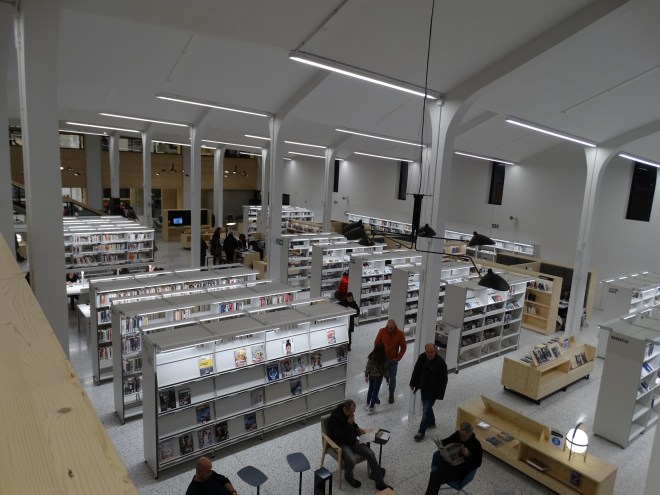 Amb el mòbil a la butxaca i la llista que tinc per a les primeres visites com a usuari vaig entrar. El primer que vaig notar va ser l’olor a fusta, una olor agradable que embolcalla tot l’edifici. Després vaig admirar l’estructura, l’edifici per on s’escola la llum natural, i les escales escherianes que es troben al centre de tot.