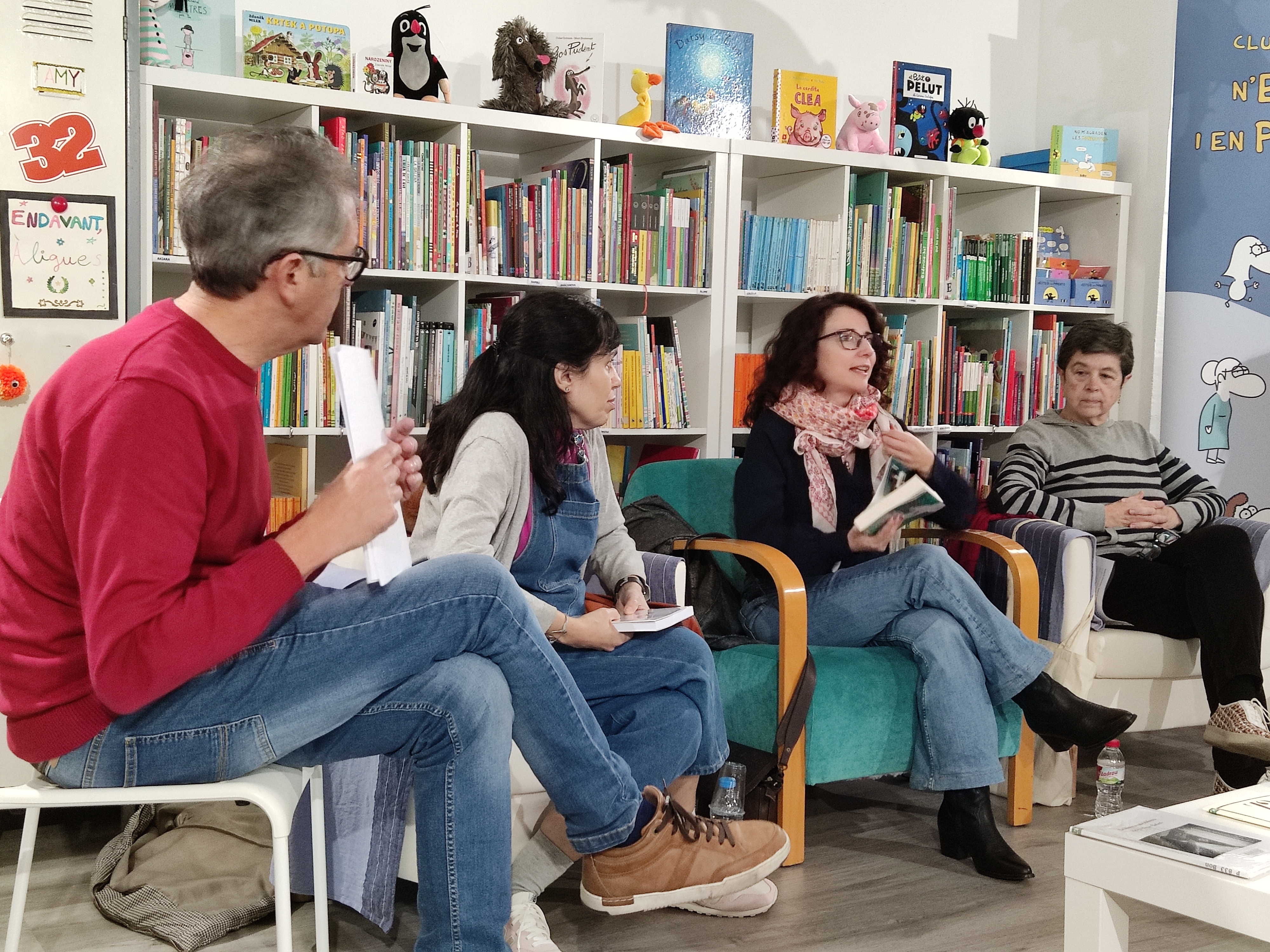 I després vam parlar amb les tres autores. De manera informal, ens van explicar les seves publicacions, la seva vinculació amb la ciutat, què llegien de petites, què llegeixen ara, quins temes els interessen i al final vam centrar la conversa en el món editorial i l’autoedició.