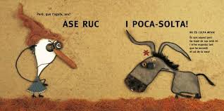 Vam parlar de reciclatge i després de repartir les xapetes de la sessió i una frontissa-llibre tunejada seguint el model Legrand, vam fet la lectura compartida de «No és culpa meva!» i la vam comparar amb la versió castellana «¡Yo no he sido!». Vam riure força amb les il·lustracions i les expressions de la pagesa.